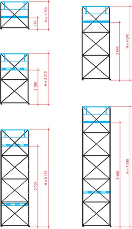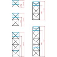 Modulární lehké profesionální ocelové lešení, variabilní výšky, rozebiratelné, chráněno pozinkováním, zábradlí zlatě pozinkováno, stupně na stojnách s hloubkovým protismykovým rýhováním, volitelné nastavení výšky pracovní plošiny po 29 cm, zabezpečení proti větru, padací dveře pro vnitřní výstup. Rozpěry opěrných rámů s hloubkovým protismykovým rýhováním, rozpětí (vzdálenost opěrných rámů) se skládá z dlouhých příčných kleštin (zavětrováním) pro zabezpečení větší tuhosti.