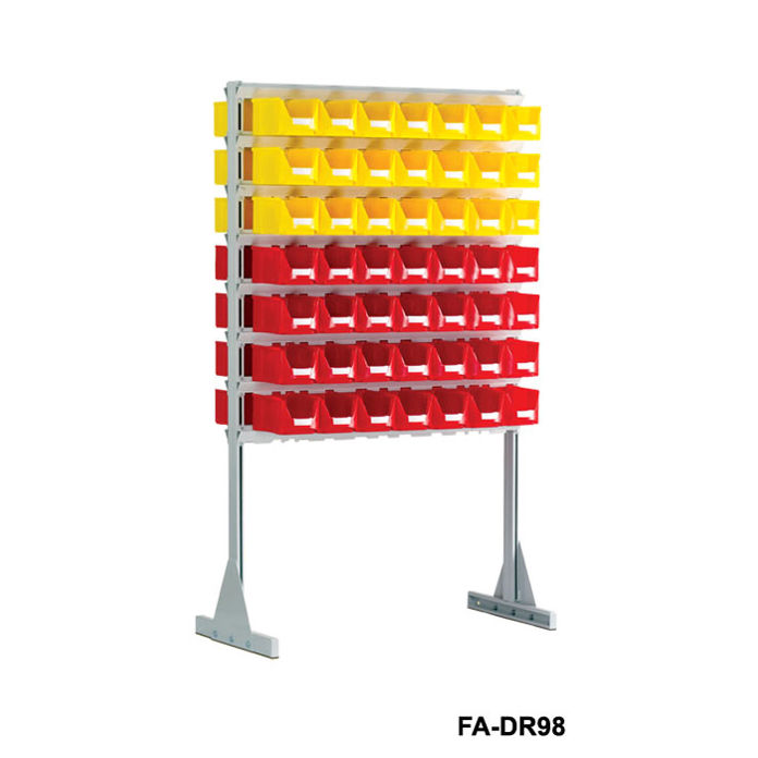 Stacionární jednostranné i oboustranné provedení stojanů (lehké a robustní provedení) se zavěšenými nádobami. Závěsné lišty jsou přestavitelné po celé výšce nosného rámu. Pojízdné stojany jsou opatřeny otočnými kolečky (dvě otočná s brzdou) pro snadný pojezd. Snadná montáž, velká ukládací kapacita, jednoduché vyjímání nádob. Provedení jednostranné i oboustranné.